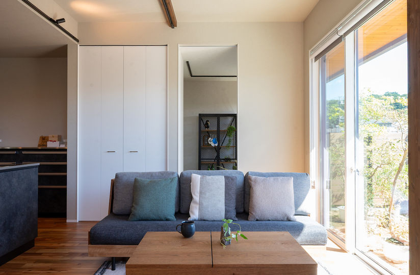 この土地の個性を活かすために、建築家が選んだのは、 「開いた庭」と「閉じた庭」を住まいに取り込むという発想。 見せたい風景を切り取り、見せたくない方向には守られる工夫。 自然と調和しながら、ご家族それぞれの“好きな時間”を大切にする家が完成しました。 植物と暮らす、ご主人の趣味の時間。 自由に走り回る愛犬と、のんびりと過ごすカメのいる日常。 ここには、「らしさ」を楽しむための余白と豊かさが息づいています。
